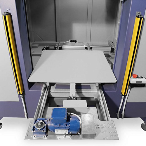 Световые фотобарьеры обеспечивают защиту персонала от травмирования в зоне движения загрузочных столов. Для ввода кабеля питания и управления рентгеновским аппаратом предусмотрен специальный рентгенозащитный кабельный ввод.